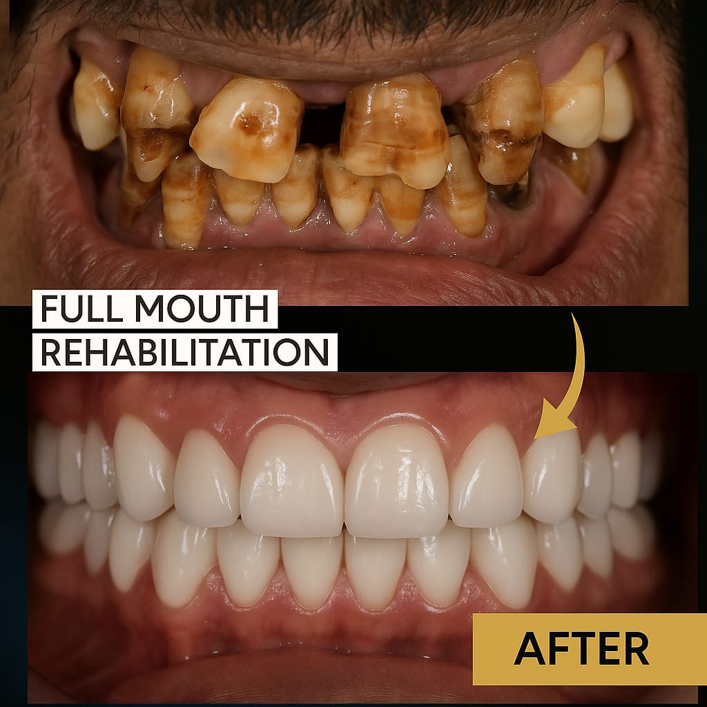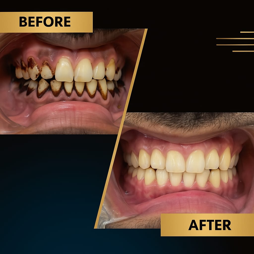 Case Studies Real Cases. Real Smiles. Dental Case Studies That Matter. Discover the Future of Dental Care Gentle, Advanced & Effective Treatments for a Brighter, Healthier Smile Air Polishing Aquacare clean up Ulcer healed with Laser Mental free bridges Zoom Whitening All On 4 Dental Implants Fibroma removal using Laser Fractured tooth Rehabilitation with composite Veneer Full Mouth Rehabilitation
